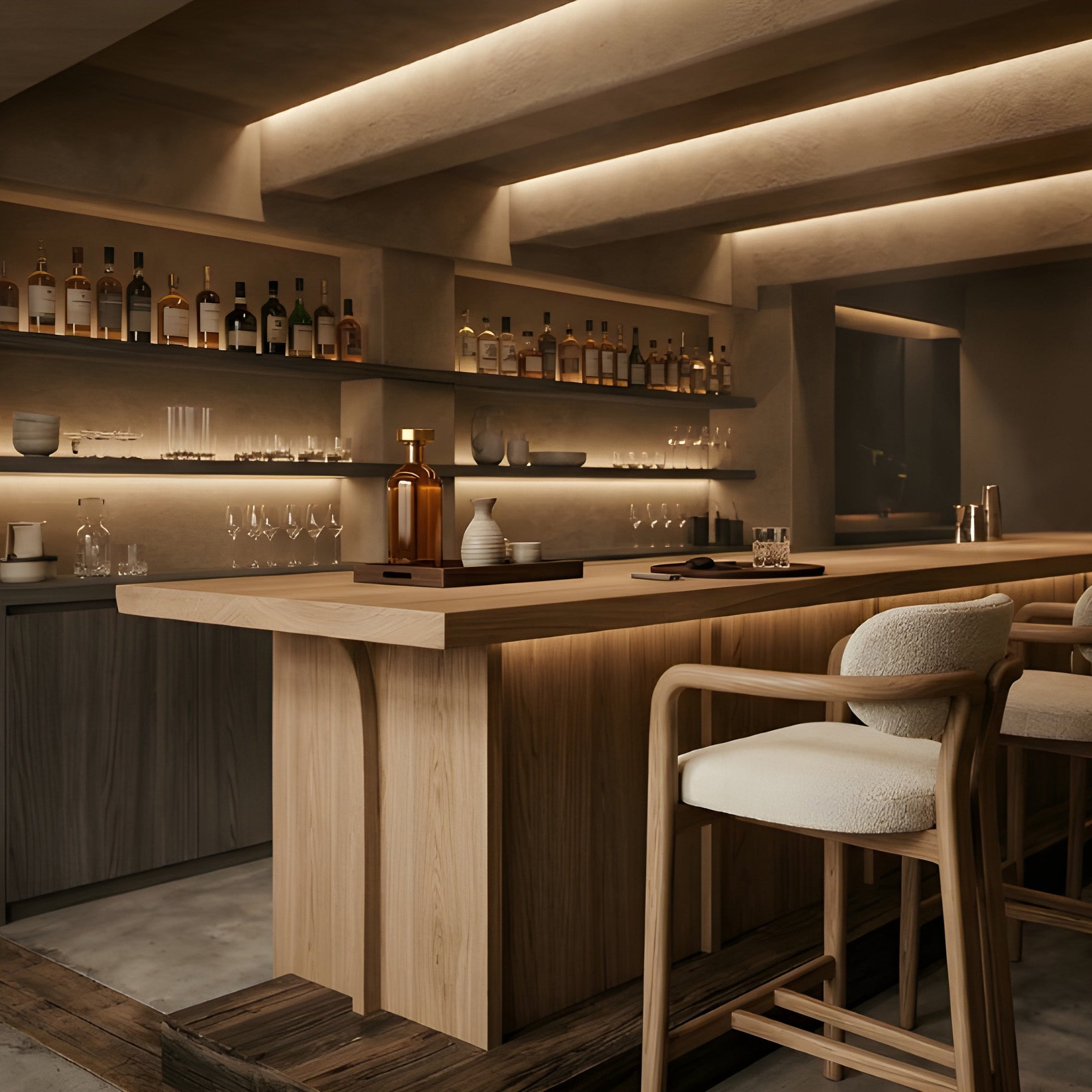 This is typically applied to key elements such as bars, built-in seating, banquettes or other project-defining features.